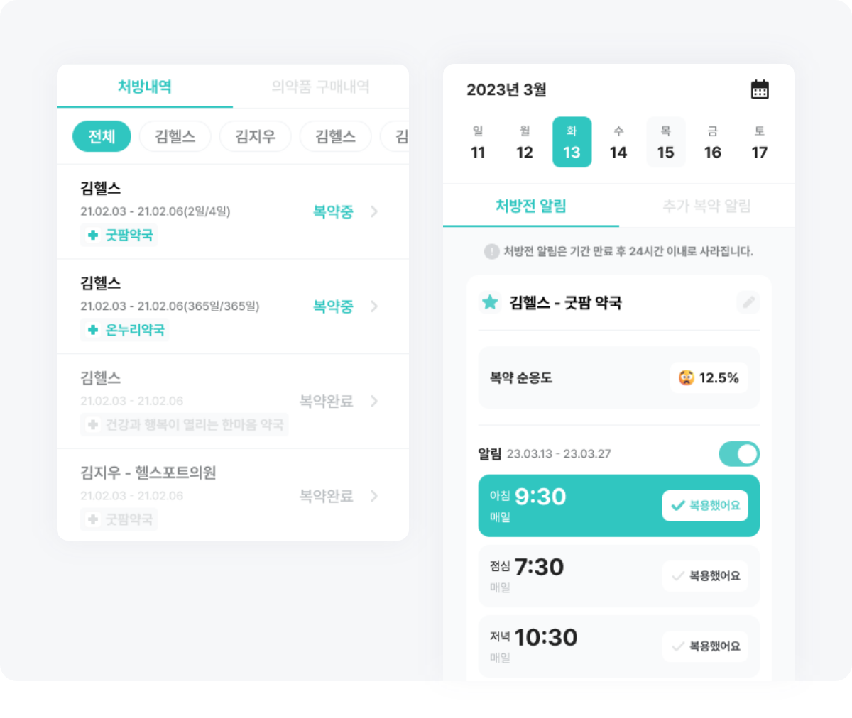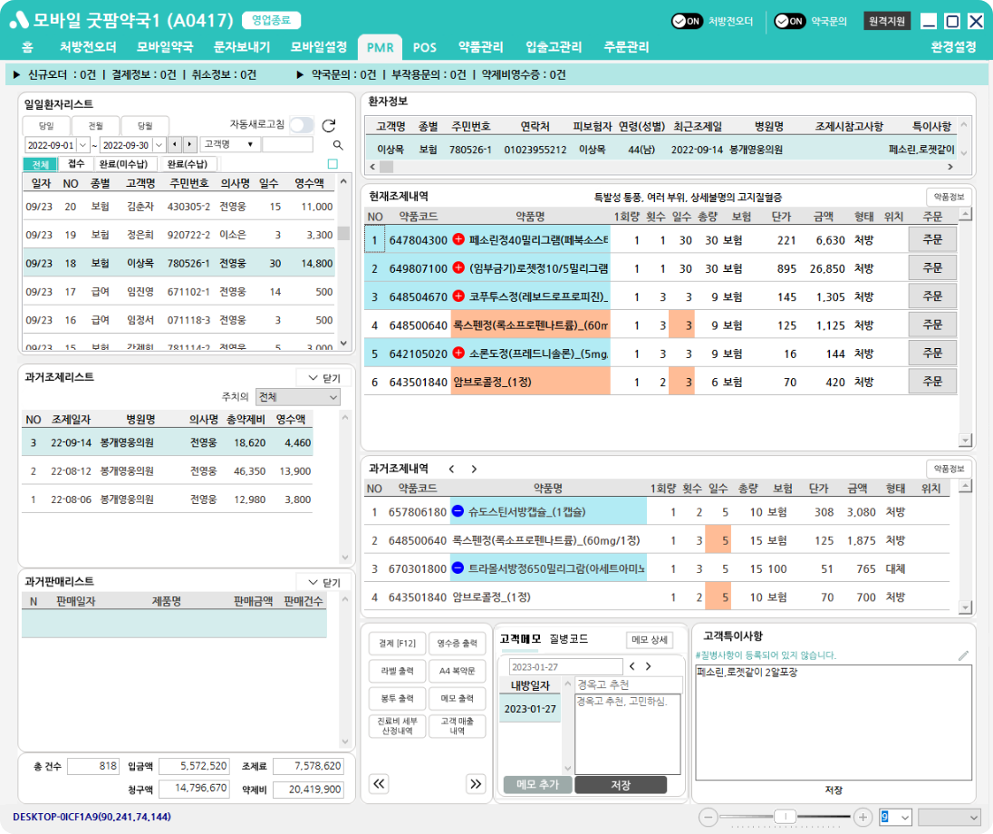 조제 내역과 일반 매약 매칭으로 고객관리를 편리하게 하고